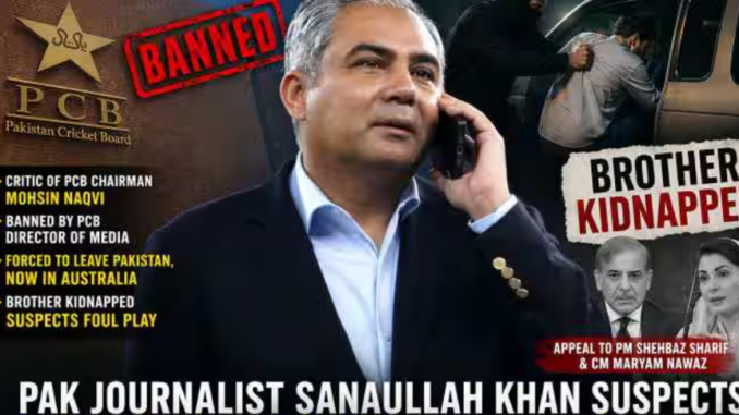 Pakistan: Pakistani journalist Sanaullah Khan, banned by the PCB and living in exile in Australia after fleeing Dubai, has made an urgent appeal to PM Shehbaz Sharif and CM Maryam Nawaz after his brother was kidnapped while picking up his children from school. Sanaullah, known for criticising PCB Chairman Mohsin Naqvi and producing pro India content, suspects his journalism career and forced exile are directly connected to his brother’s abduction.