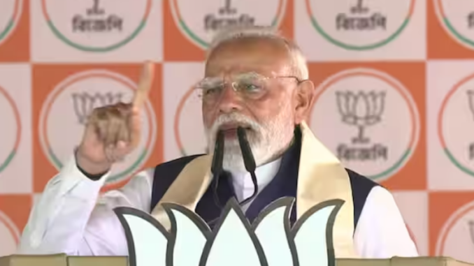 Bengal: Prime Minister Narendra Modi on Sunday launched a scathing attack on the Trinamool Congress (TMC), saying the party no longer utters “Maa, Maati, Maanus” (mother, motherland and people), as doing so would expose its “sins.” He alleged that the TMC’s “cruelty” made “Maa” (mother) cry, handed over “Maati” (motherland) to syndicates and infiltrators, and forced the “Maanus” (people) of Bengal to flee.