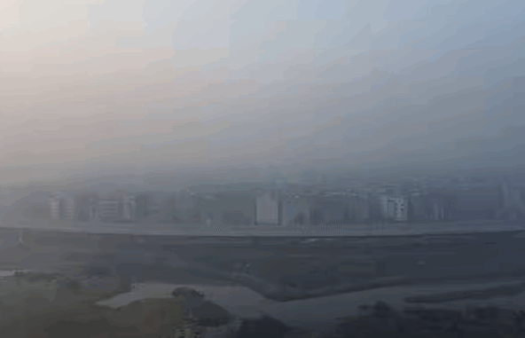 A thick layer of haze blanketed the city from morning hours and returned in the evening, significantly reducing visibility on roads and contributing to slower traffic movement.