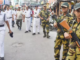Indian equity benchmarks, the Sensex and Nifty, closed in the red after two straight weeks of gains, weighed down by rising geopolitical tensions and cautious commentary from major IT firms.