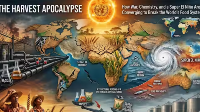 NewDelhi: The world is sleepwalking into a food crisis of historic proportions. Not because of any single failure, but because three catastrophic forces, an extreme heat emergency formally documented by the United Nations, a wartime chokepoint strangling the chemistry that feeds the planet, and a super El Nino bearing down on the world’s most vulnerable agricultural basins, are arriving simultaneously, and amplifying each other with brutal precision. What follows is not a forecast. It is a structural reading of a system already fracturing at multiple points.